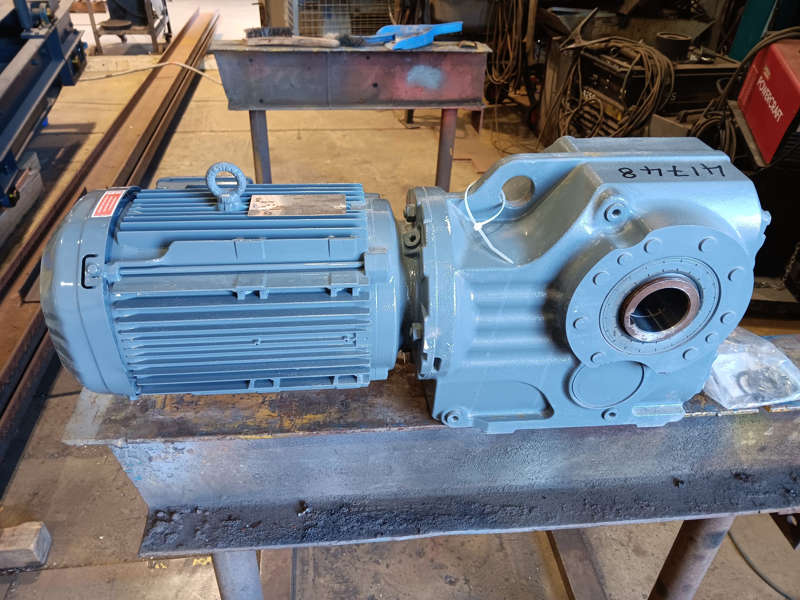 Description SEW KA77 gearbox with 3kw motor at 25rpm Manufacturer: SEW Model: KA77 DRN100L4 3kw at 25rpm Condition: Appears unused SKU: GB113 Price: $1,600.00 Enquire about this listing Project navigationPreviousPrevious project:Nord 2.2kw SK3282AFH-100LP/4 TF RD agitator gearbox and motorNextNext project:Twco 185kw 4 pole electric motor